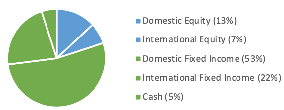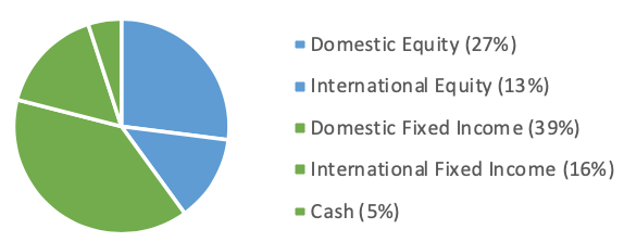 Trust funds are invested with a little more risk and a little more potential gain than conservative, with 60% fixed income and 40% equity.