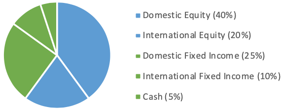 Our greatest potential returns for those who want to take on a little more risk.  A moderate growth portfolio is 40% fixed income and 60% equity.